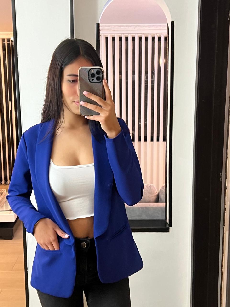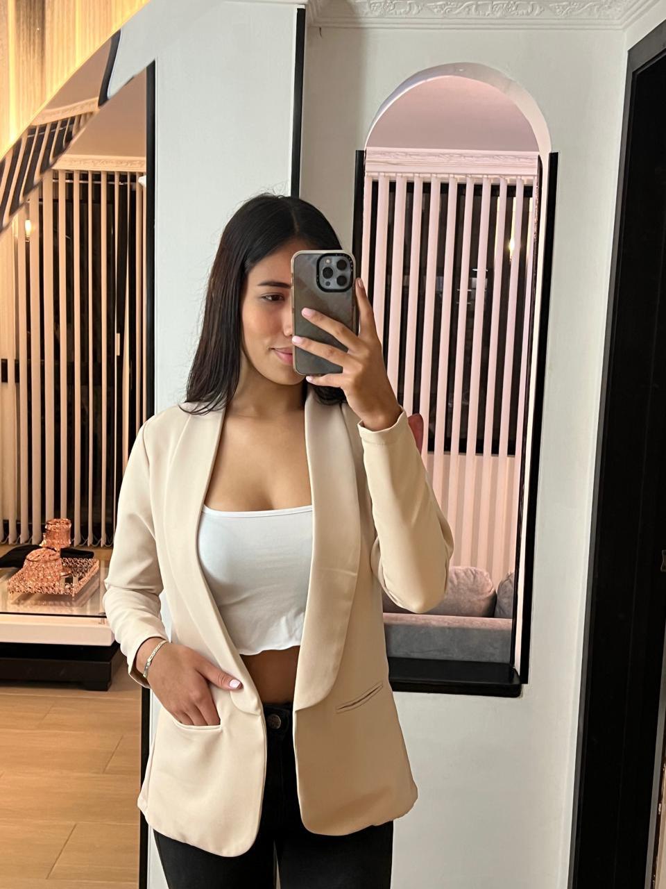 El Blazer Donatella está fabricado en lino semi licrado "Noche de Viena", brindándote elegancia, frescura y comodidad en cada movimiento.